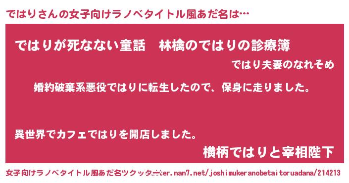 | 胡散臭い通販商品みたいなあだ名 | 『ハリウッド女優が絶賛した100年もののヴィンテージワイン…その名も「ではり」』 |