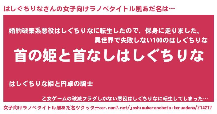 | 欧米人風あだ名 | 『アンジェラ・はしぐちりな』 |