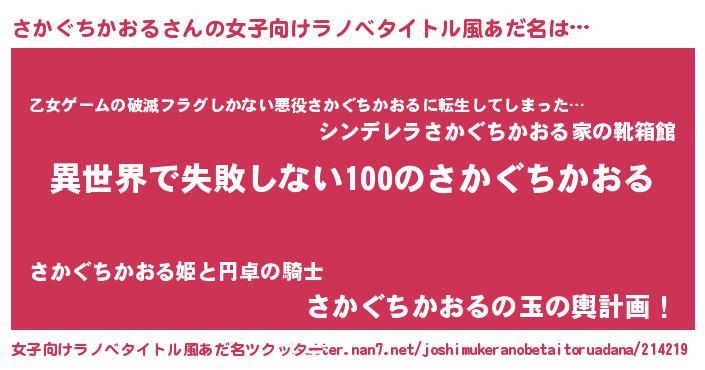 | 男性向けラノベタイトル風あだ名 | 『さかぐちかおるという概念が存在しない退屈な世界 』 |