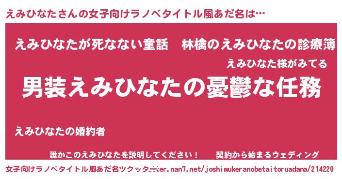 | 男性向けラノベタイトル風あだ名 | 『冴えないえみひなたの育てかた』 |