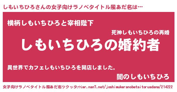 | 肩書あだ名 | 『しもいちひろ国家主席』 |