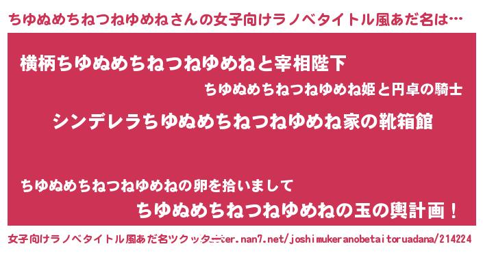 | 胡散臭い通販商品みたいなあだ名 | 『必ず成功する霊験あらたかなお札…その名も「ちゆぬめちねつねゆめね」』 |