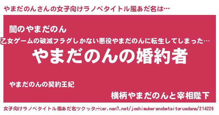 | ファンタジー風あだ名 | 『エターナルヤマダノンー』『ゼヤマトゥ』 |