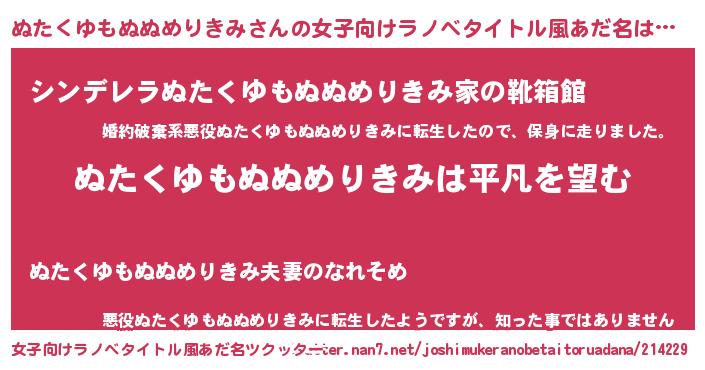 | 胡散臭い通販商品みたいなあだ名 | 『信頼と実績のペンダント…その名も「ぬたくゆもぬぬめりきみ」』 |