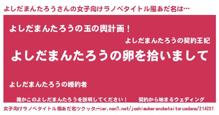 | 男性向けラノベタイトル風あだ名 | 『よしだまんたろうの嫁は女の子じゃないと思った?』 |