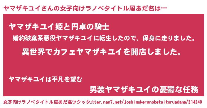 | ヘコむあだ名 | 『ヤマザキユイ(震え声)』『ヤマにー』 |