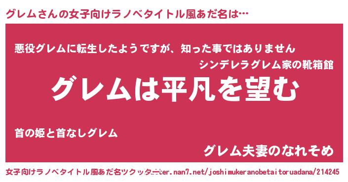 | 男性向けラノベタイトル風あだ名 | 『ダンジョンにグレムを求めるのは間違っているだろうか』 |