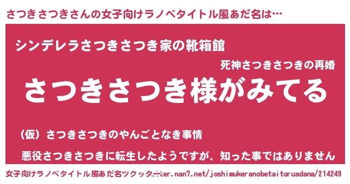 | 意味不明あだ名 | 『とにかく怪しいさつきさつき』 |