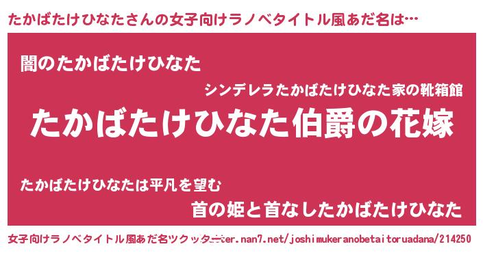 | ファンタジー風あだ名 | 『エターナルタカバタケヒナター』 |