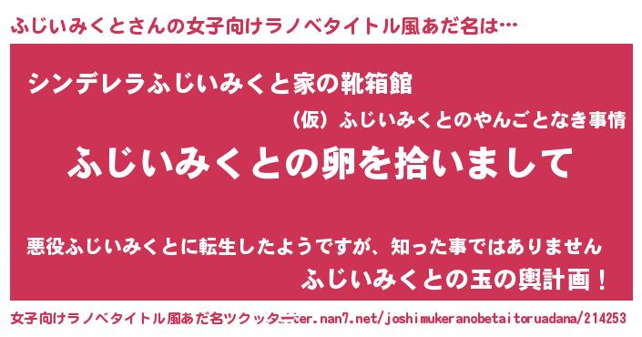 | 男性向けラノベタイトル風あだ名 | 『ダンジョンにふじいみくとを求めるのは間違っているだろうか』 |