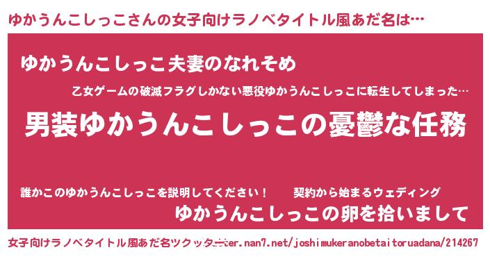 | 伝説のあだ名 | 『救世主となる占い師ゆかうんこしっこ』 |