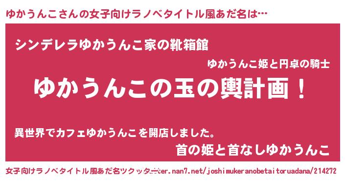 | 胡散臭い通販商品みたいなあだ名 | 『億万長者になれるブレスレット…その名も「ゆかうんこ」』 |
