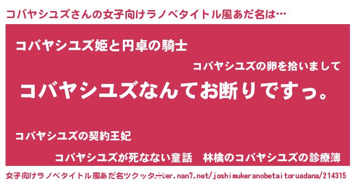 | 男性向けラノベタイトル風あだ名 | 『魔法科高校のコバヤシユズ』 |