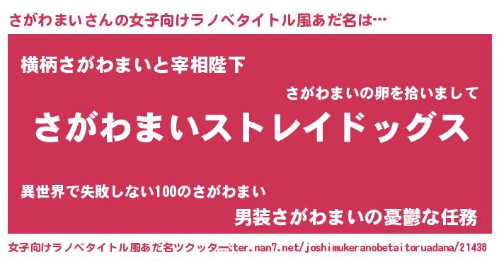 | ヘコむあだ名 | 『さがぷりん』『さがわまい(苦笑)』 |