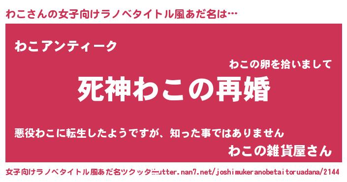 | 男性向けラノベタイトル風あだ名 | 『ノーゲーム・ノーワコ』 |