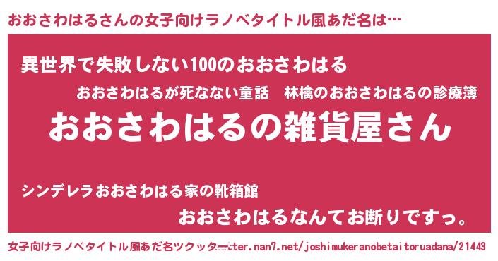 | ファンタジー風あだ名 | 『エターナルオオサワハルー』 |