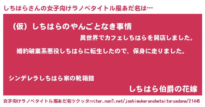 | 男性向けラノベタイトル風あだ名 | 『転生したらしちはらだった件』 |