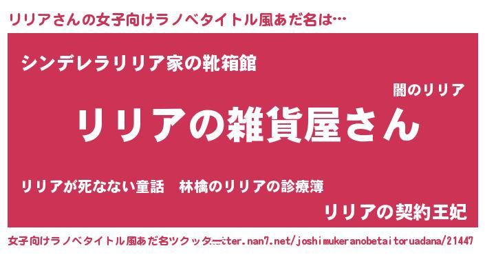 | 男性向けラノベタイトル風あだ名 | 『やはりリリアの青春ラブコメはまちがっている 』 |