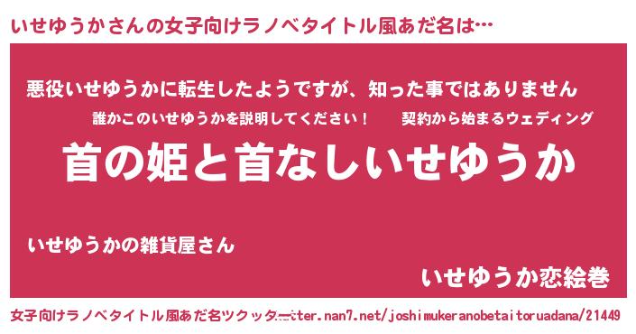 | 男性向けラノベタイトル風あだ名 | 『はたらくいせゆうかさま!』 |