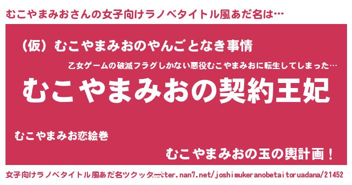| 男性向けラノベタイトル風あだ名 | 『むこやまみおという概念が存在しない退屈な世界 』 |