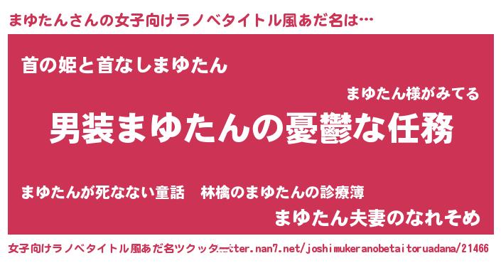 | 男性向けラノベタイトル風あだ名 | 『うちのまゆたんが世界を掌握している!』 |