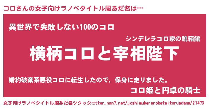 | 男性向けラノベタイトル風あだ名 | 『コロに滅ぼされるだけの簡単なお仕事です』 |