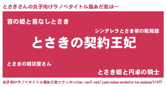 | 男性向けラノベタイトル風あだ名 | 『とさきという概念が存在しない退屈な世界 』 |