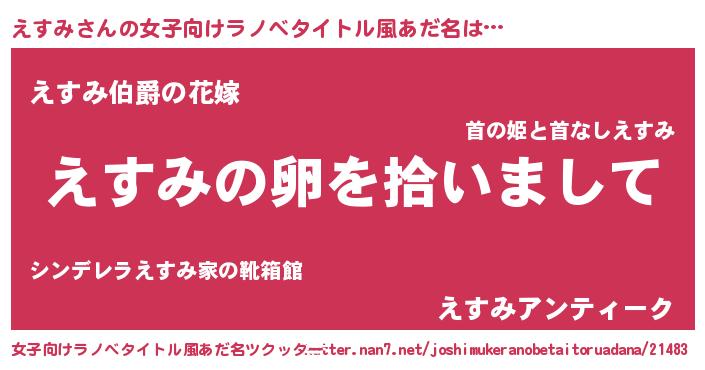 | 男性向けラノベタイトル風あだ名 | 『えすみの嫁は女の子じゃないと思った?』 |