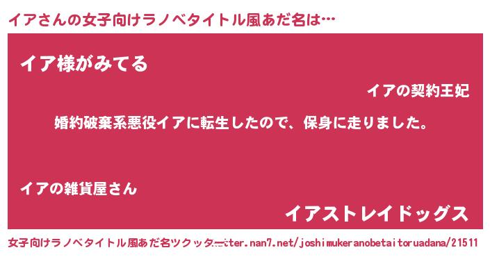 | 胡散臭い通販商品みたいなあだ名 | 『信頼と実績のサプリメント…その名も「イア」』 |