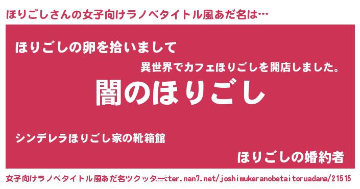 | 男性向けラノベタイトル風あだ名 | 『Re:ほりごしから始める異世界生活』 |