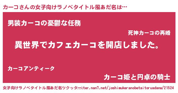 | 男性向けラノベタイトル風あだ名 | 『誰もが恐れるあのカーコが、ぼくの専属メイドになるようです。』 |