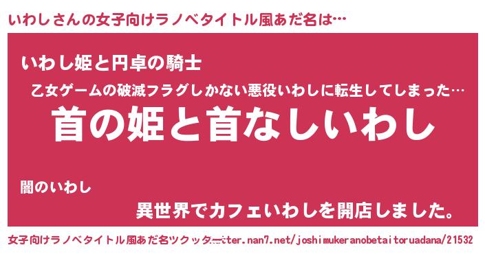 | 男性向けラノベタイトル風あだ名 | 『はたらくいわしさま!』 |