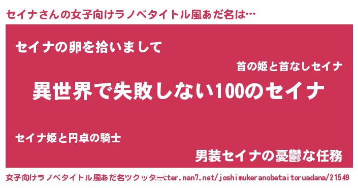 | 男性向けラノベタイトル風あだ名 | 『セイナという概念が存在しない退屈な世界 』 |