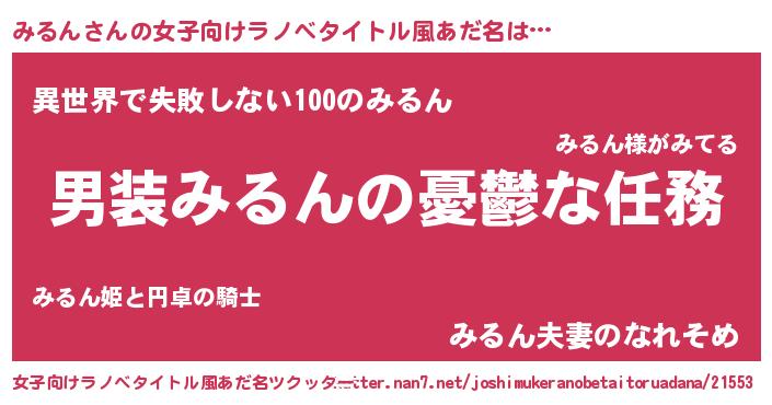 | ヒーロー風カッコイイあだ名 | 『ネオミルン』『正義の使者みるん』 |