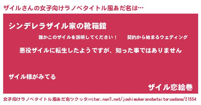 | 男性向けラノベタイトル風あだ名 | 『この素晴らしい世界にザイルを!』 |
