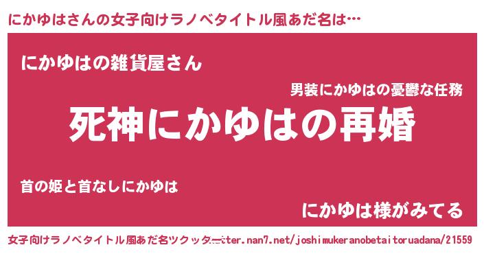 | ヘコむあだ名 | 『酢こんぶ』『にかを』 |