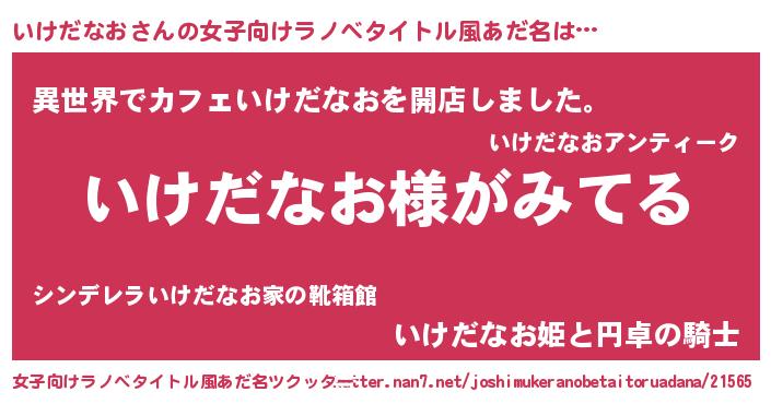| 男性向けラノベタイトル風あだ名 | 『いけだなおの嫁は女の子じゃないと思った?』 |