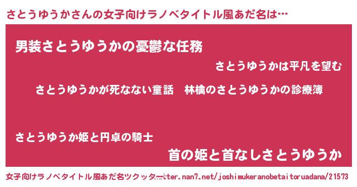 | 男性向けラノベタイトル風あだ名 | 『魔弾の王とさとうゆうか』 |