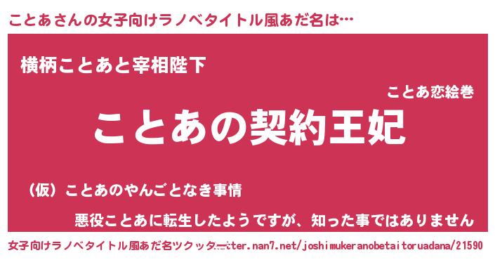 | 男性向けラノベタイトル風あだ名 | 『ことあという概念が存在しない退屈な世界 』 |