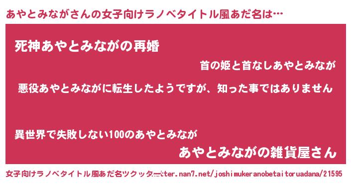 | 胡散臭い通販商品みたいなあだ名 | 『あなたにだけ特別に提供する世界で10本だけ現存している希少なブランデー…その名も「あやとみなが」』 |
