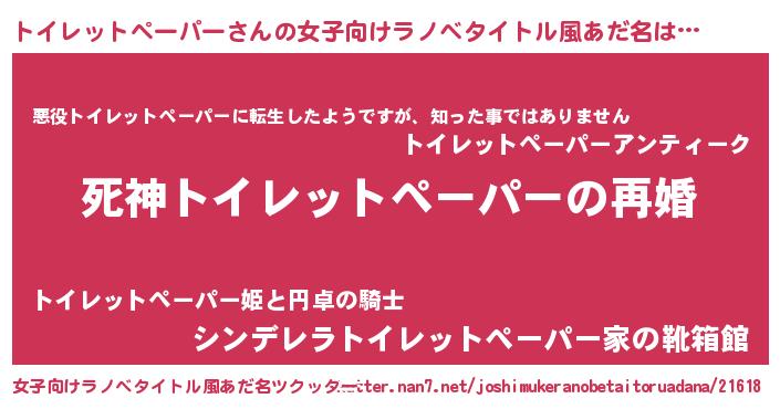 | 男性向けラノベタイトル風あだ名 | 『ノーゲーム・ノートイレットペーパー』 |