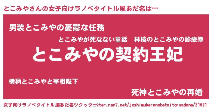 | 意味不明あだ名 | 『永久保存とこみや』『自称とこみや』 |