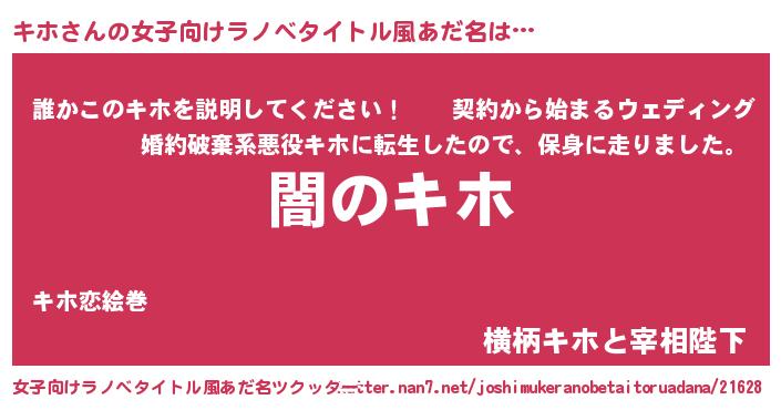 | 男性向けラノベタイトル風あだ名 | 『Re:キホから始める異世界生活』 |