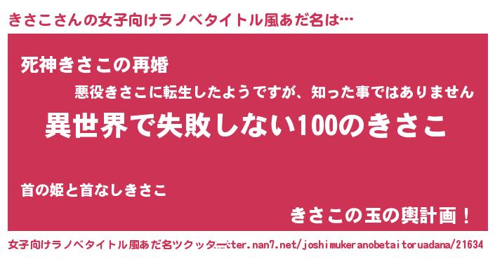 | 男性向けラノベタイトル風あだ名 | 『きさこという概念が存在しない退屈な世界 』 |