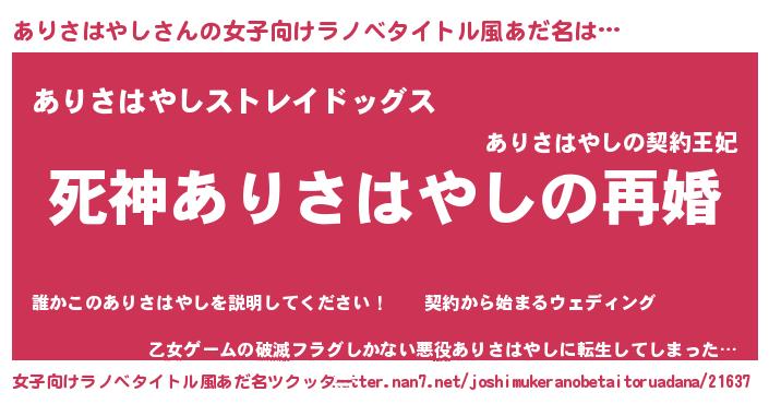 | ヒーロー風カッコイイあだ名 | 『慈愛の使者ありさはやし』 |