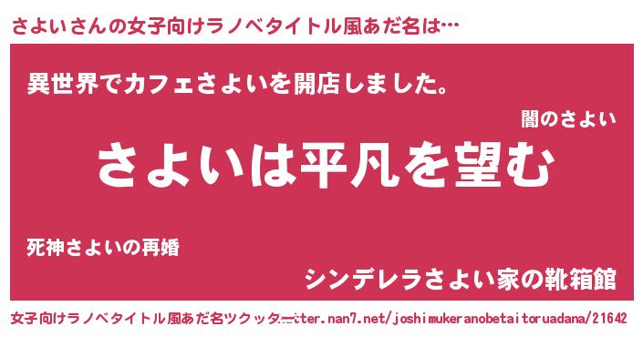 | 意味不明あだ名 | 『とにかく怪しいさよい』『自称さよい』 |