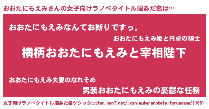 | 男性向けラノベタイトル風あだ名 | 『おおたにもえみに滅ぼされるだけの簡単なお仕事です』 |