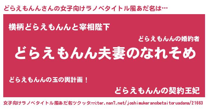 | 男性向けラノベタイトル風あだ名 | 『おまえをオタクにしてやるから、俺をどらえもんんにしてくれ! 』 |