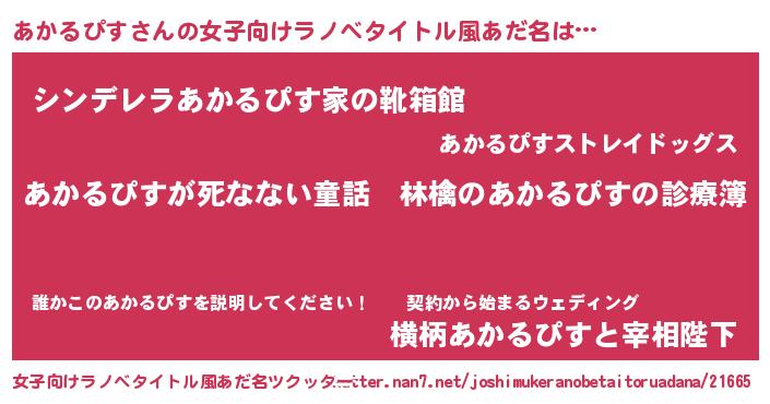 | 意味不明あだ名 | 『住所不定無職あかるぴす(79歳)』 |