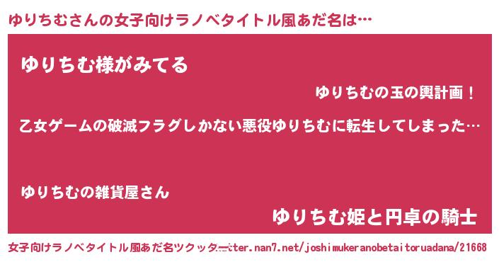 | 意味不明あだ名 | 『住所不定無職ゆりちむ(1歳)』 |